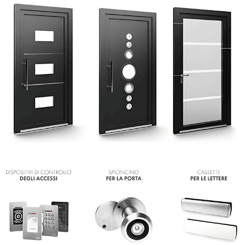 Immagina una porta che non solo protegge, ma si adatta al tuo ritmo di vita: controllo accessi avanzato con tastierini digitali e lettori di impronte, eleganti spioncini per una visione discreta dell’esterno e persino cassette per le lettere integrate, perfettamente incastonate per un tocco di praticità in più.